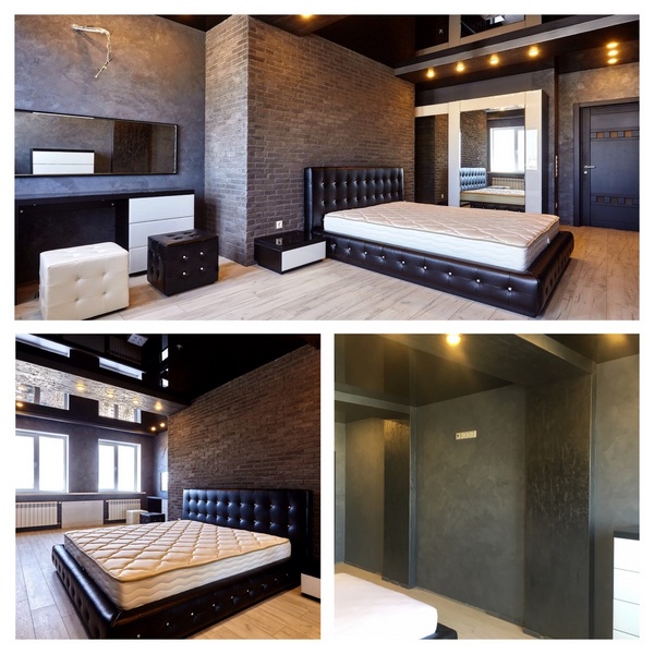 Спальное помещение: требует особого подхода к его оформлению в стиле лофт-фьюжн. Использование контрастных цветов, при этом обязательное присутствие светлого цвета создает успокаивающую обстановку, что является характерным для спального помещения.