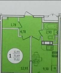 | Общая S, м2: | 33 / |