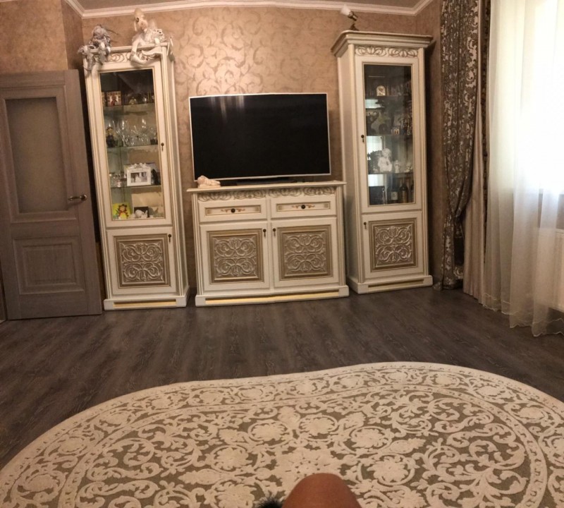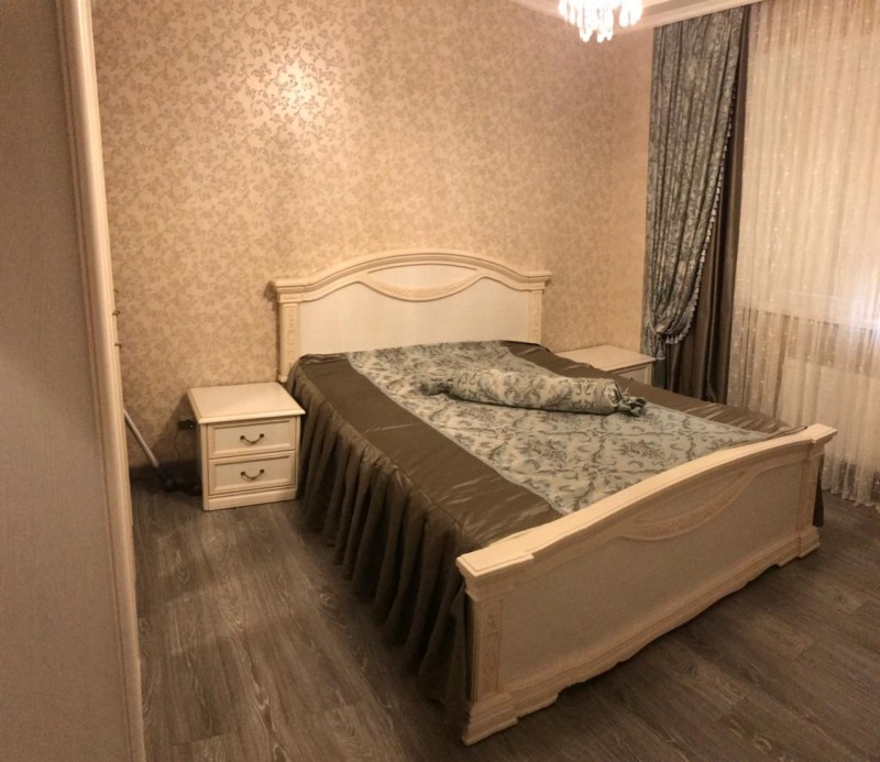 Ремонт в квартире и мебель подобраны со вкусом. В зале стоит мебельная стенка и кожаная мягкая мебель. В спальне двуспальная кровать и спальный гарнитур.