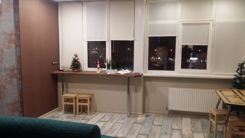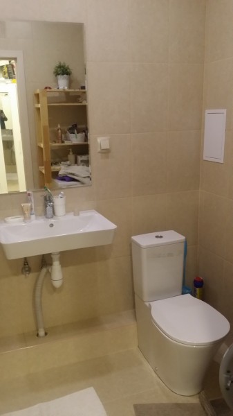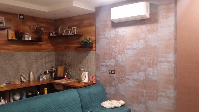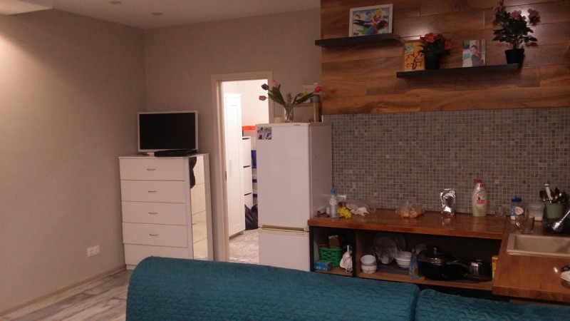 Состояние квартиры хорошее. На полу постелен ламинат, стены оклеены обоями, потолок красиво отделан гипсокартоном и натяжным потолком.