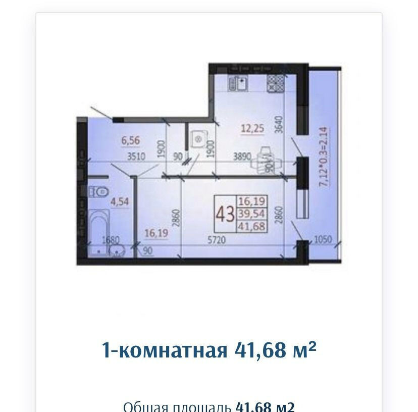 | Общая S, м2: | 42 / |