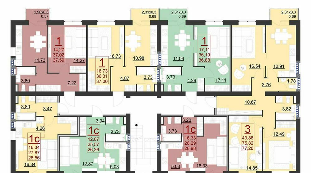 | Общая S, м2: | 77 / |