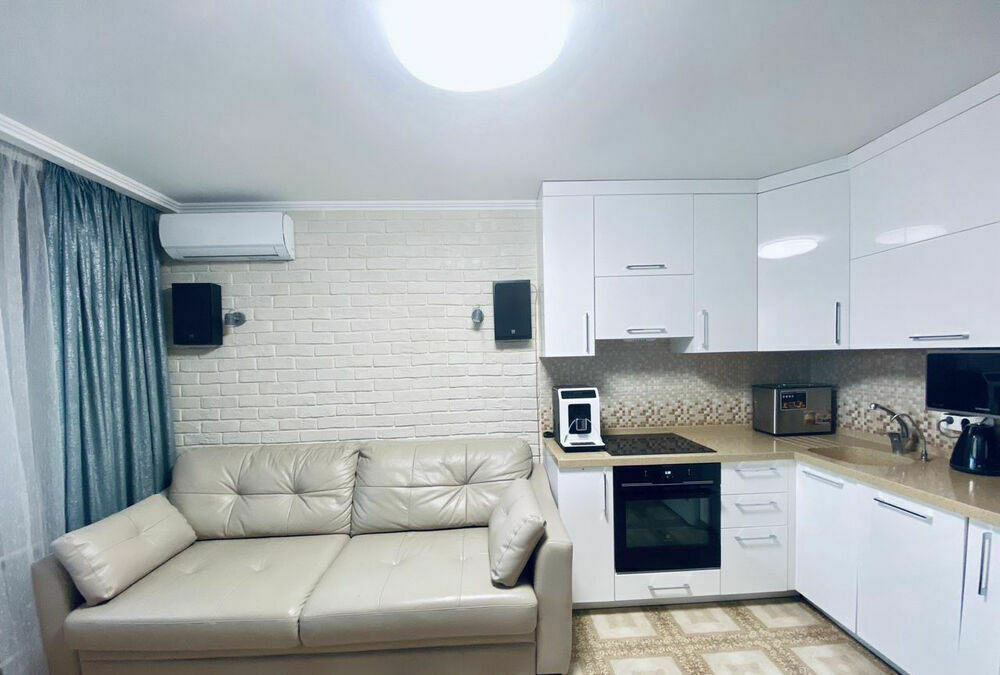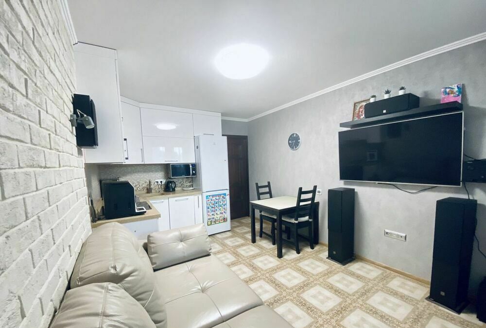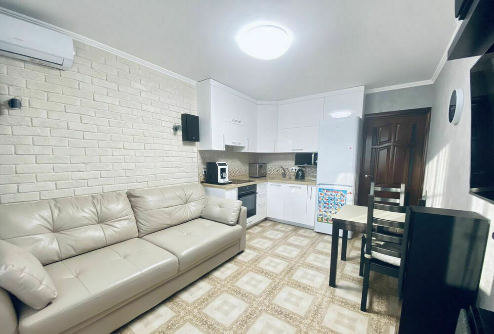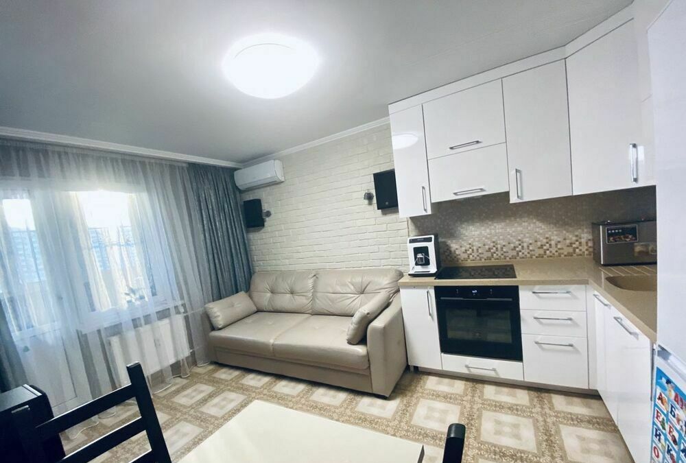 Продам двухкомнатную квартиру с большой кухней-гостиной, планировка - бабочка. Утеплены 2 балкона, тёплый пол по всей квартире, в том числе и на балконах. Свежий ремонт, качественные материалы и сантехника, не торцевая. Продаётся с мебелью и техникой. Входная дверь Torex, 3 сплит системы, тарелка триколор, индукционная варочная панель, духовой шкаф, аквариум на 200 литров. В ванной тумба с литой каменной столешницей. Кухня - фасады эмаль, цельная литая каменная столешница, раскладной стол со столешницей из каленого стекла, кожаный диван. Полностью переделана проводка, сделаны дополнительные розетки, провода для акустики и TV заложены в стену, для предупреждения трещин стены армированы сеткой. Один балкон выходит на улицу Российскую, перед окнами ничего нет, вторая сторона на ул. Котлярова, до ближайшего дома не менее 500 м. Ремонт делали для себя, с продажей не торопимся, торг в пределах разумного. Для тех кто хочет квартиру дешевле, поищите с ремонтом от застройщика. Риэлторов просьба звонить только при наличии реальных покупателей, договор подписывать не будем!!! Обмен на дом в прикубанском округе BuyReklama.ru