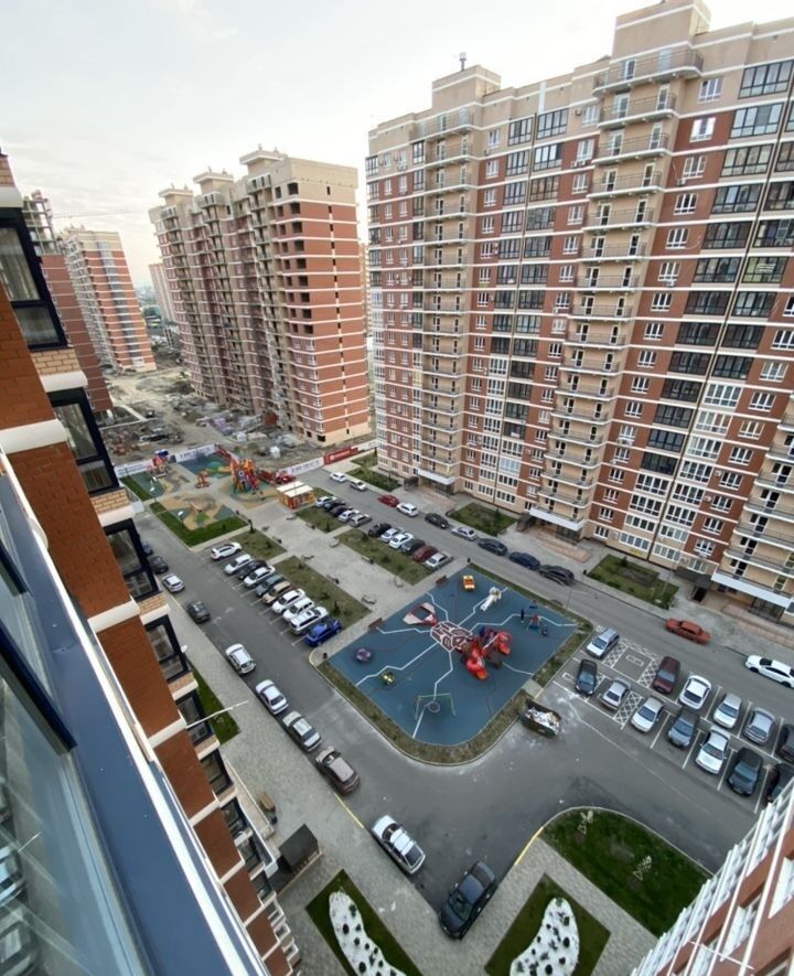 65 кв м. Кухня-гостиная 16кв м, детская 18, и спальня. Просторная лоджия. Остеклена.