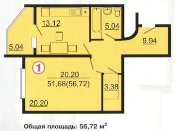 | Общая S, м2: | 56 / |
