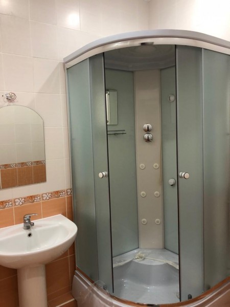 В санузле душевая кабина. Плитка фирменная из дорогой коллекции итальянской плитки.