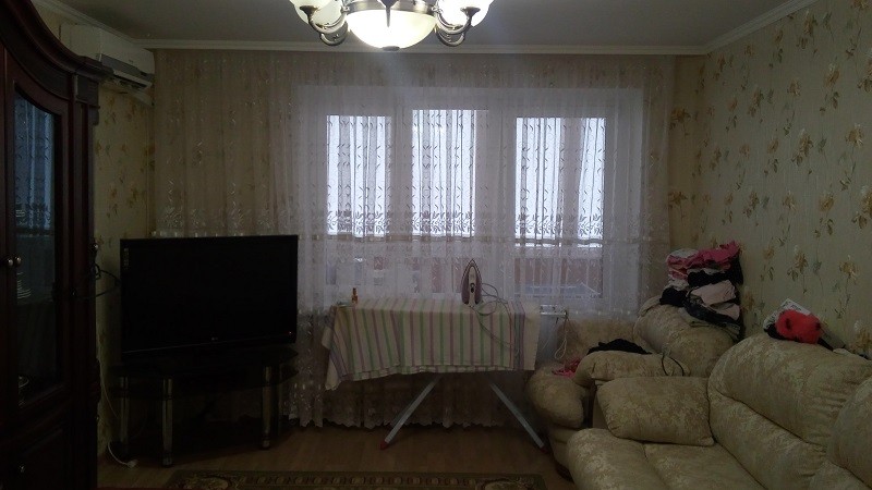 В квартире выполнен качественный ремонт с использованием современных материалов. На полу постелен ламинат, на стенах поклеены обои, натянут матовый натяжной потолок. При входе стоит надежная металлическая дверь.